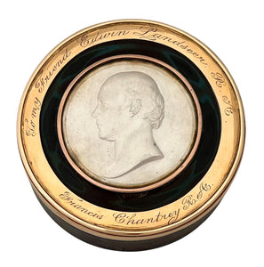 Sir Francis Chantrey RA & Sir Edwin Landseer RA Gold Mounted Portrait Snuff Box. After William Bain.