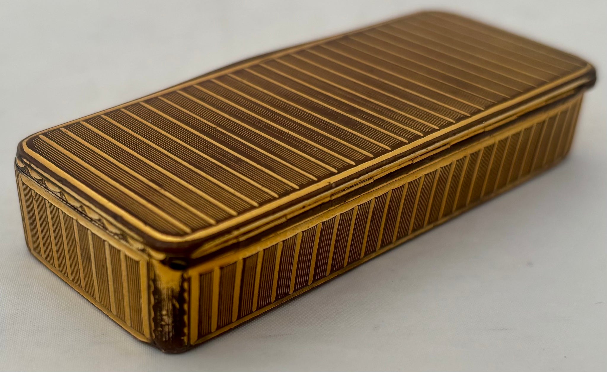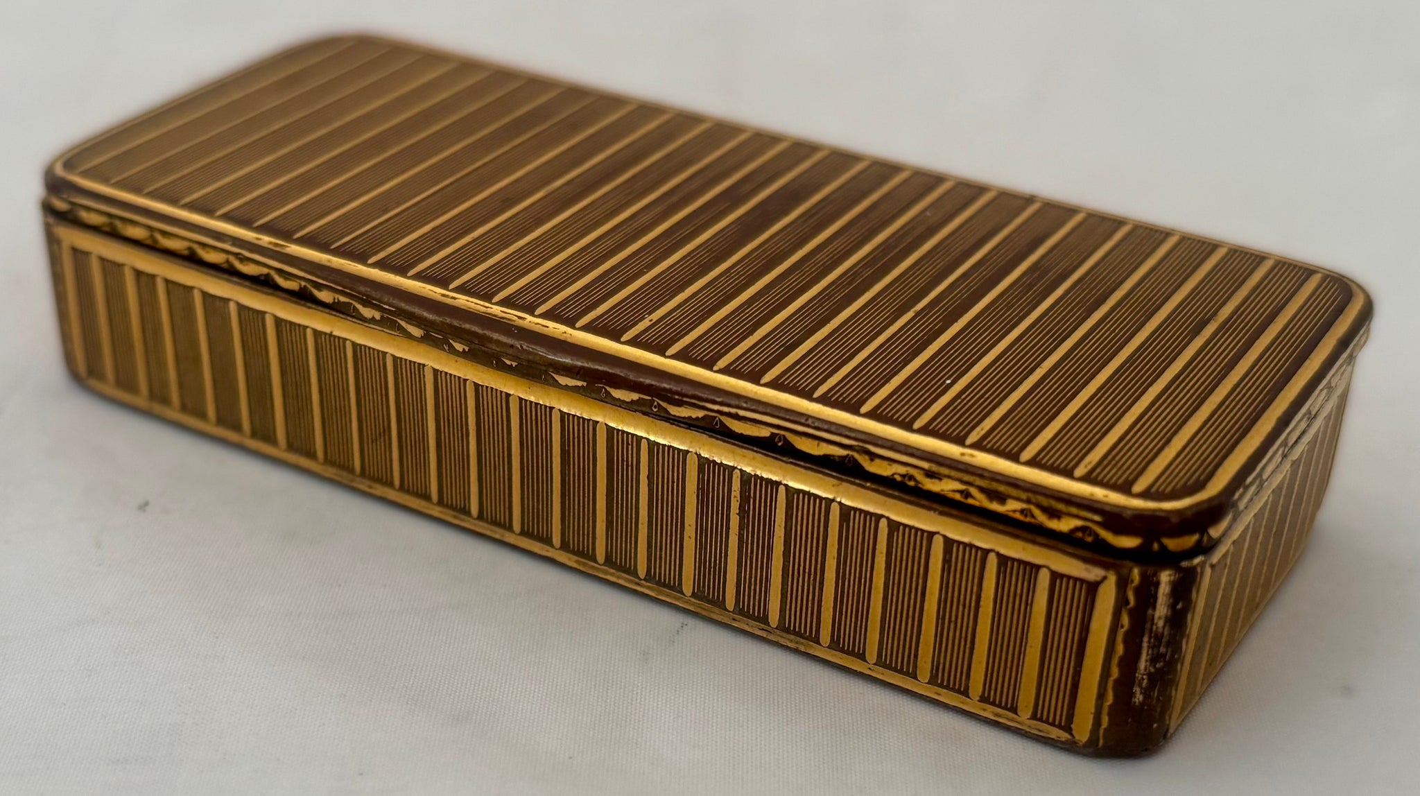A 19th Century Gilt Metal Snuff Box, with Engine Turned Detail.