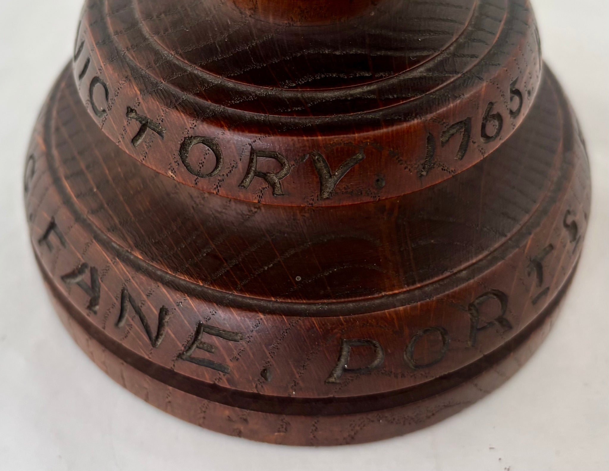 Admiral Sir Charles George Fane KCB FZS (1837 - 1909) Turned Oak Chalice, 'A Relic of HMS Victory 1765'. Presented to the Admiral at Christmas 1894, while he was Admiral-Superintendent of HM Dockyard Portsmouth (1892 - 1896). The chalice features a brass roundel depicting the family crest of Fane.