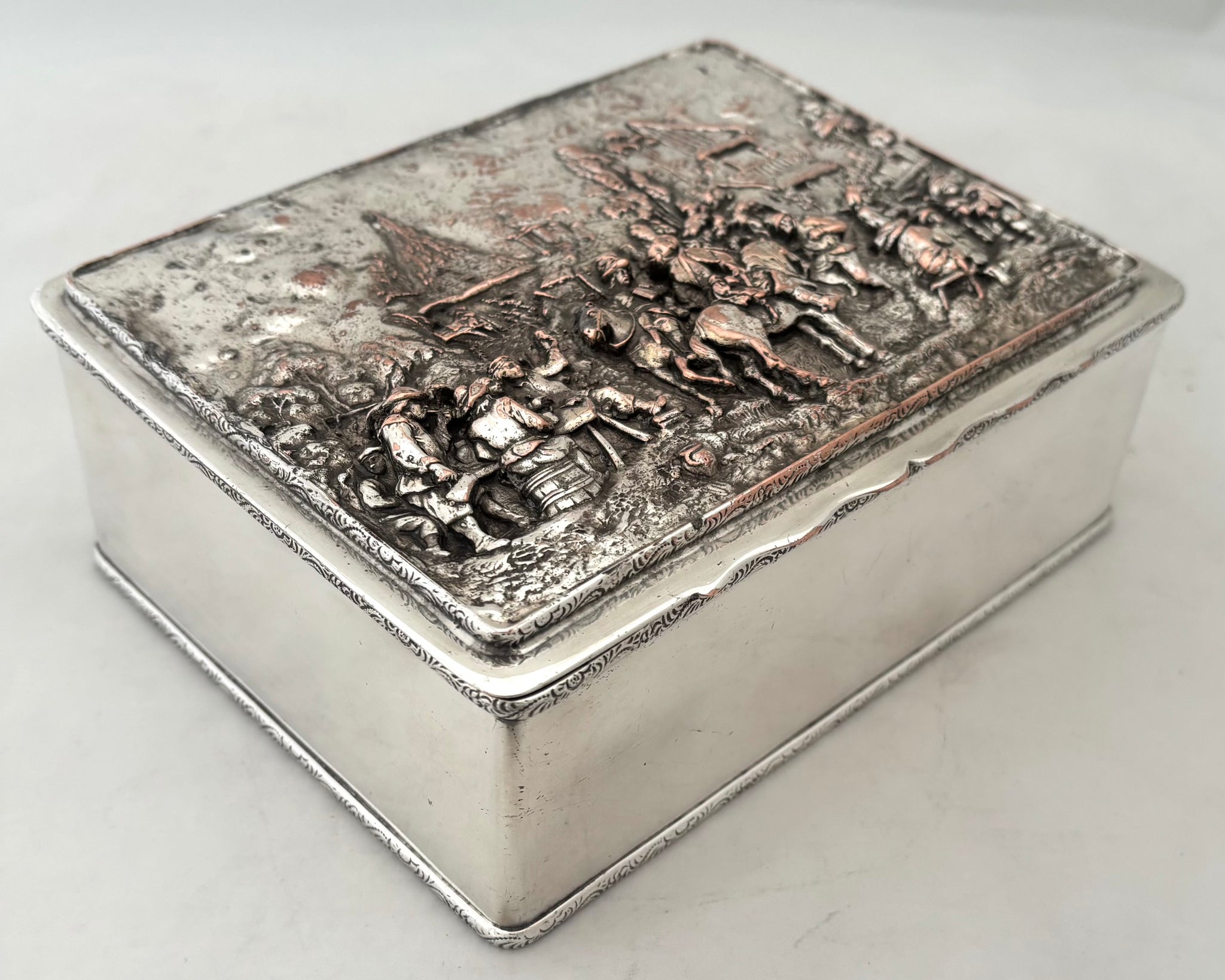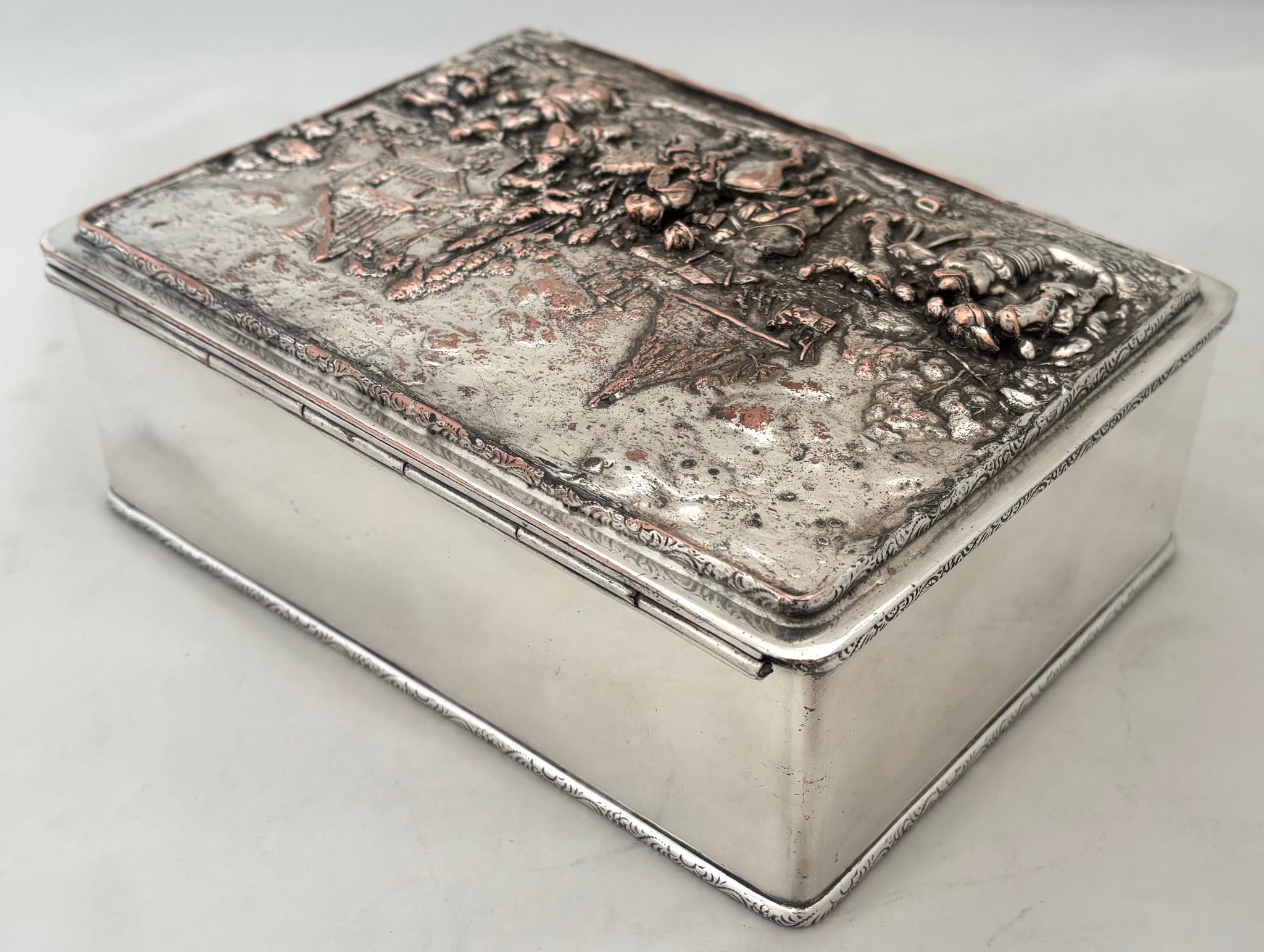 A Large French Silver Plated Figural Relief Casket. Dating to the late 19th, or early 20th century.
