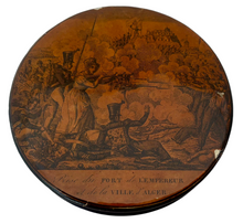 General Louis Auguste Victor de Ghaisnes de Bourmont and The French Capture of the Emperor's Fort, Algiers July 4th 1830, Circular Papier Mache Snuff Box, circa 1830.