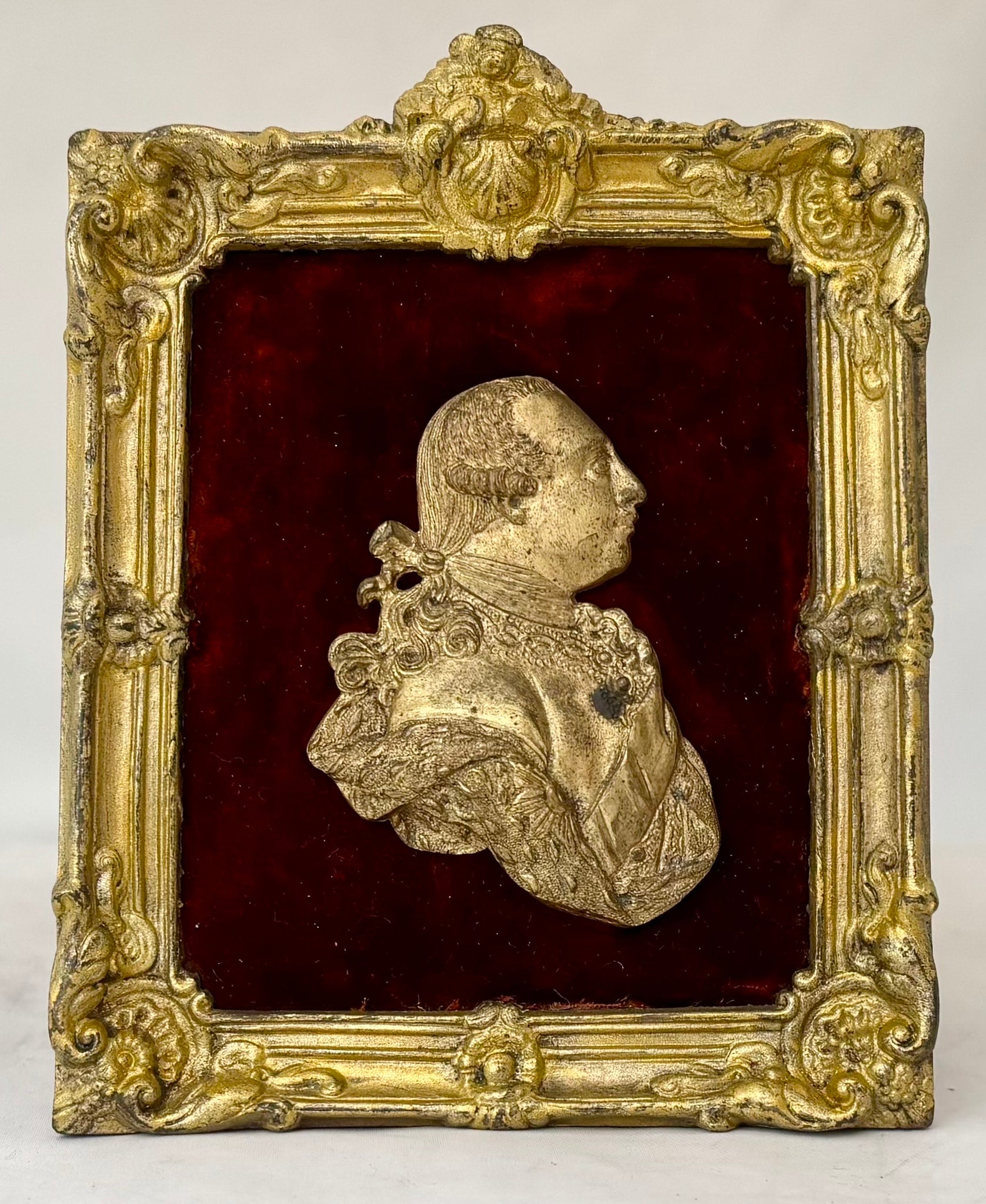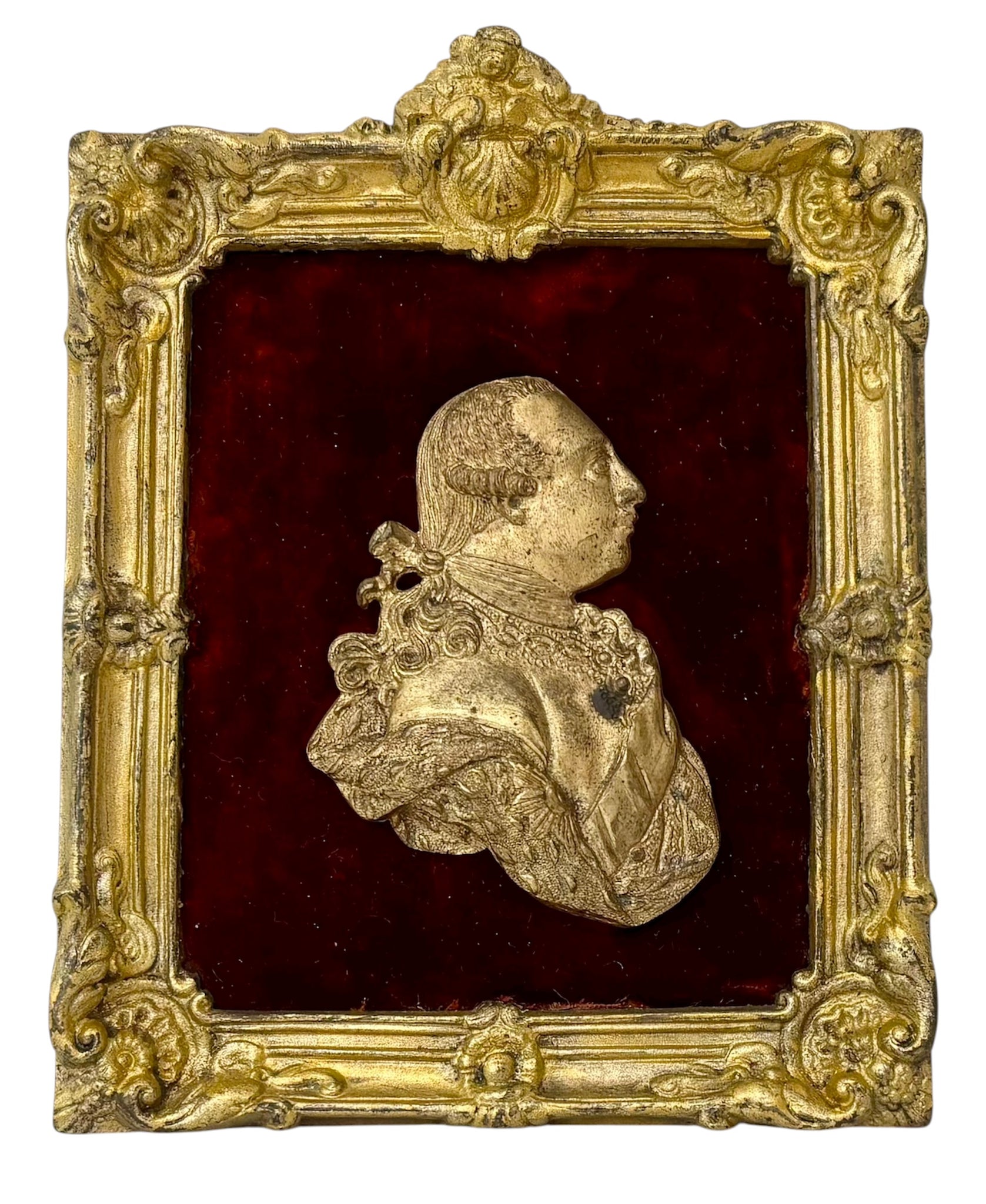 George III, An Early 19th Century Gilt Metal Portrait Profile Bust. Mounted on Velvet in Contemporary Gilt Frame.