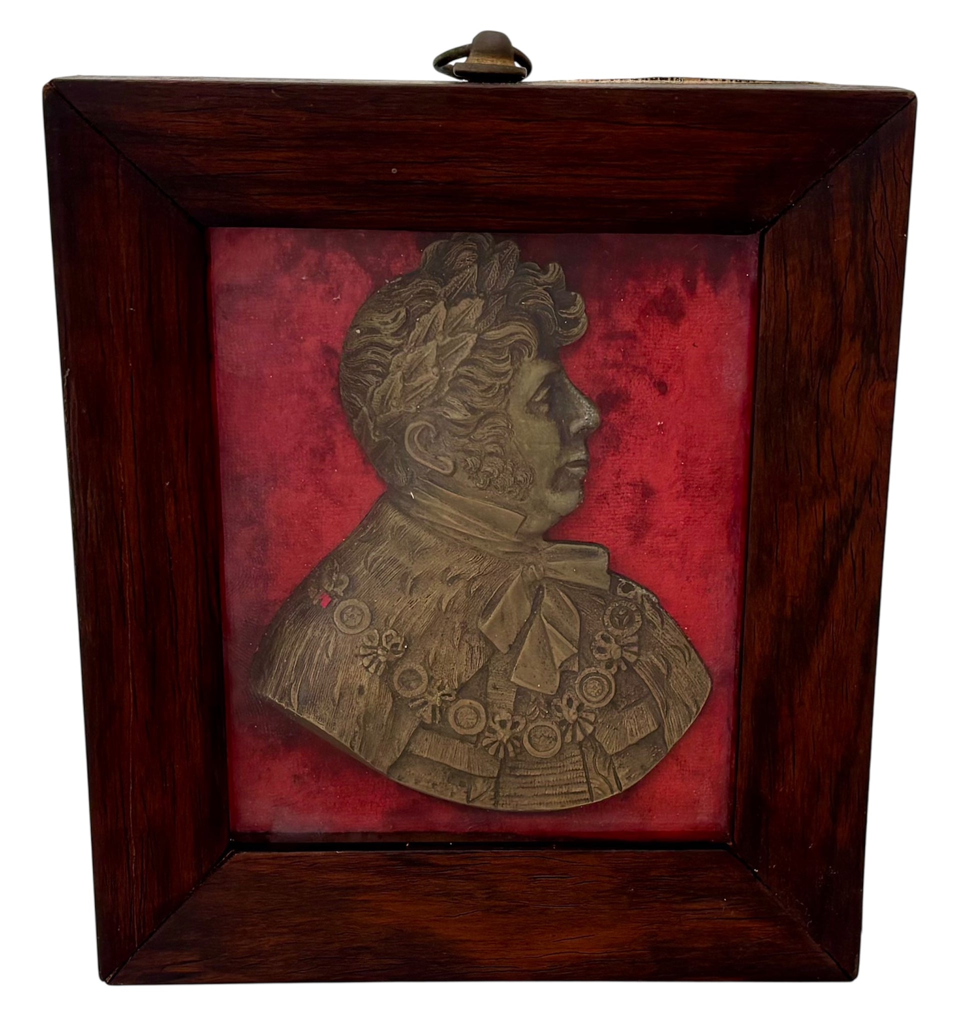 A George IV Gilt Metal Portrait Profile Plaque in a Rosewood Glazed Frame on a Velvet Backing. Circa 1820.