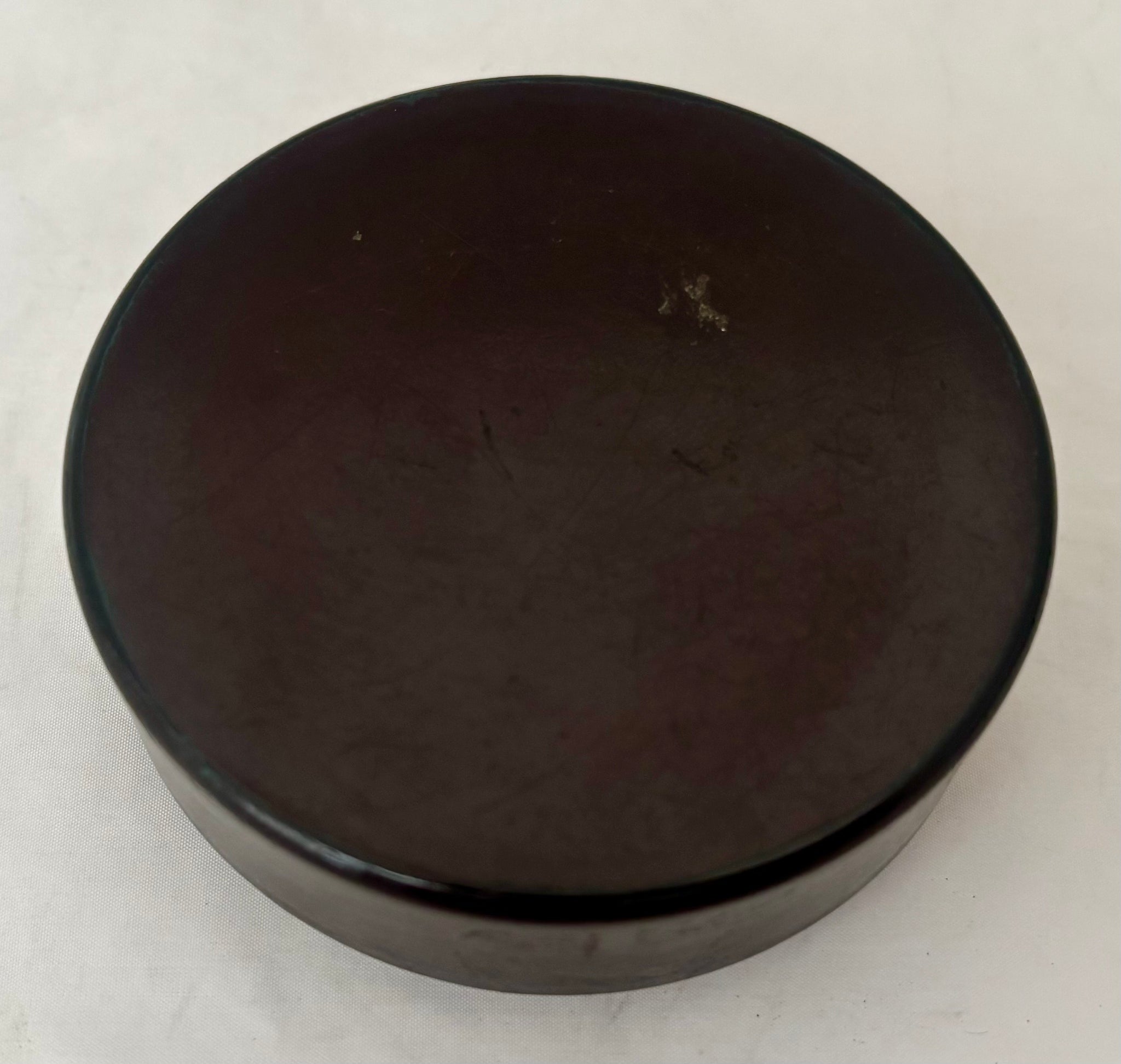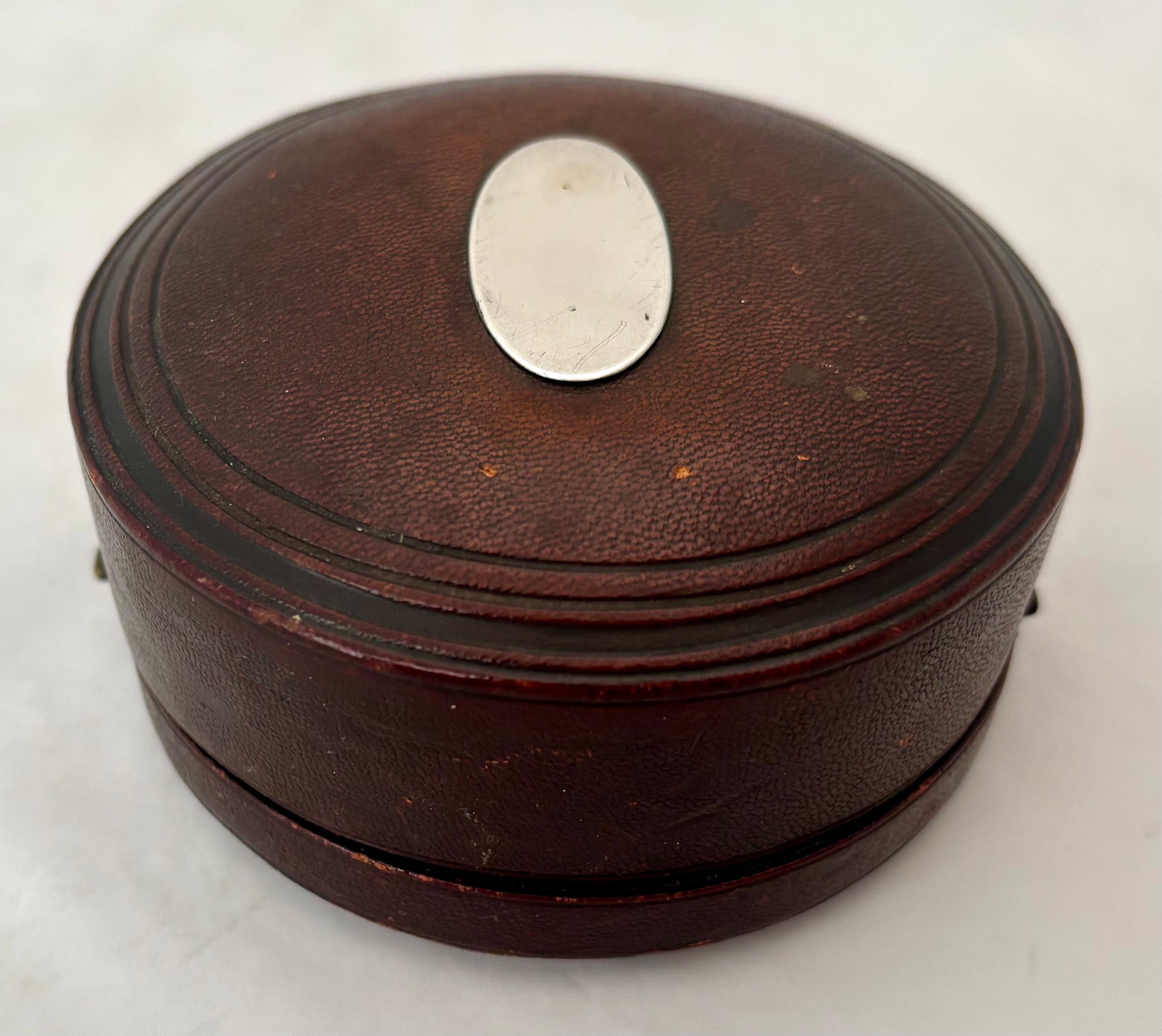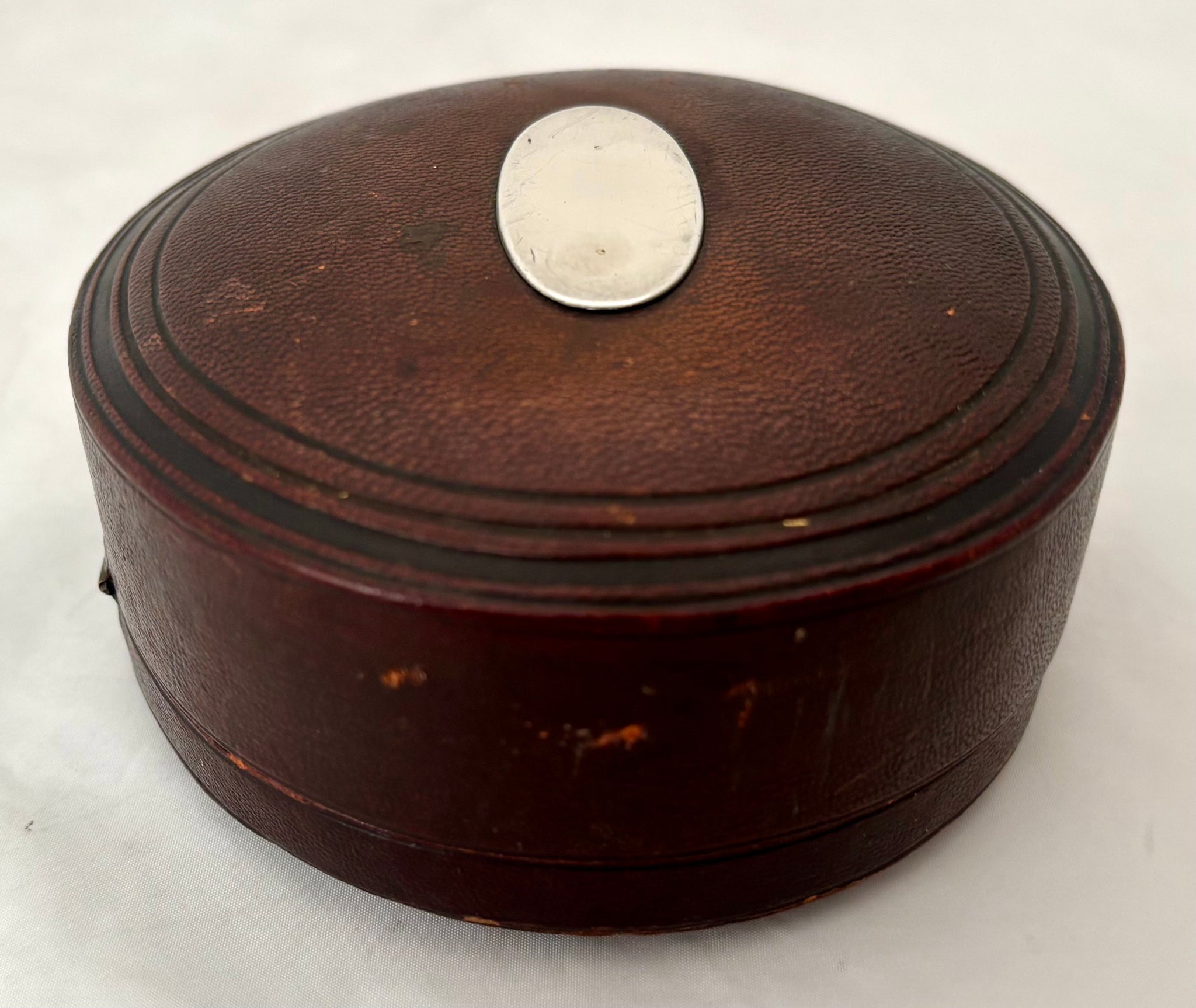 In good condition with no glass, or unmarked white metal portrait damage. The unmarked gold rim of the cover has a small crease to the side. The box has no losses and the inner rim is intact. The interior of the cover has high wear and some tearing in the area under where the portrait is. There is also some writing scratched into the cover interior. There is a small loss to the shellac style border, between the two bands of unmarked gold. The is just above the name ‘Chantrey’.