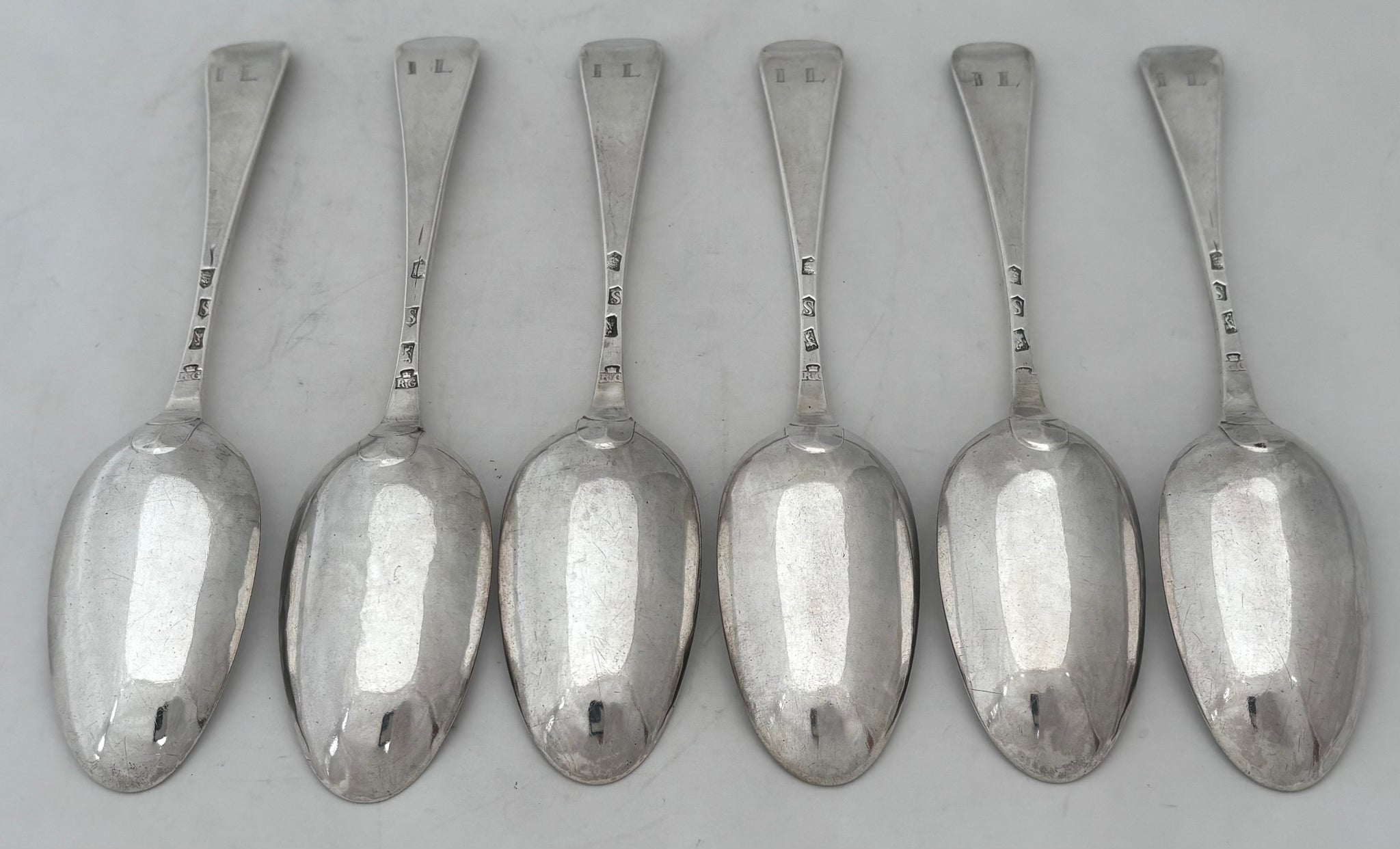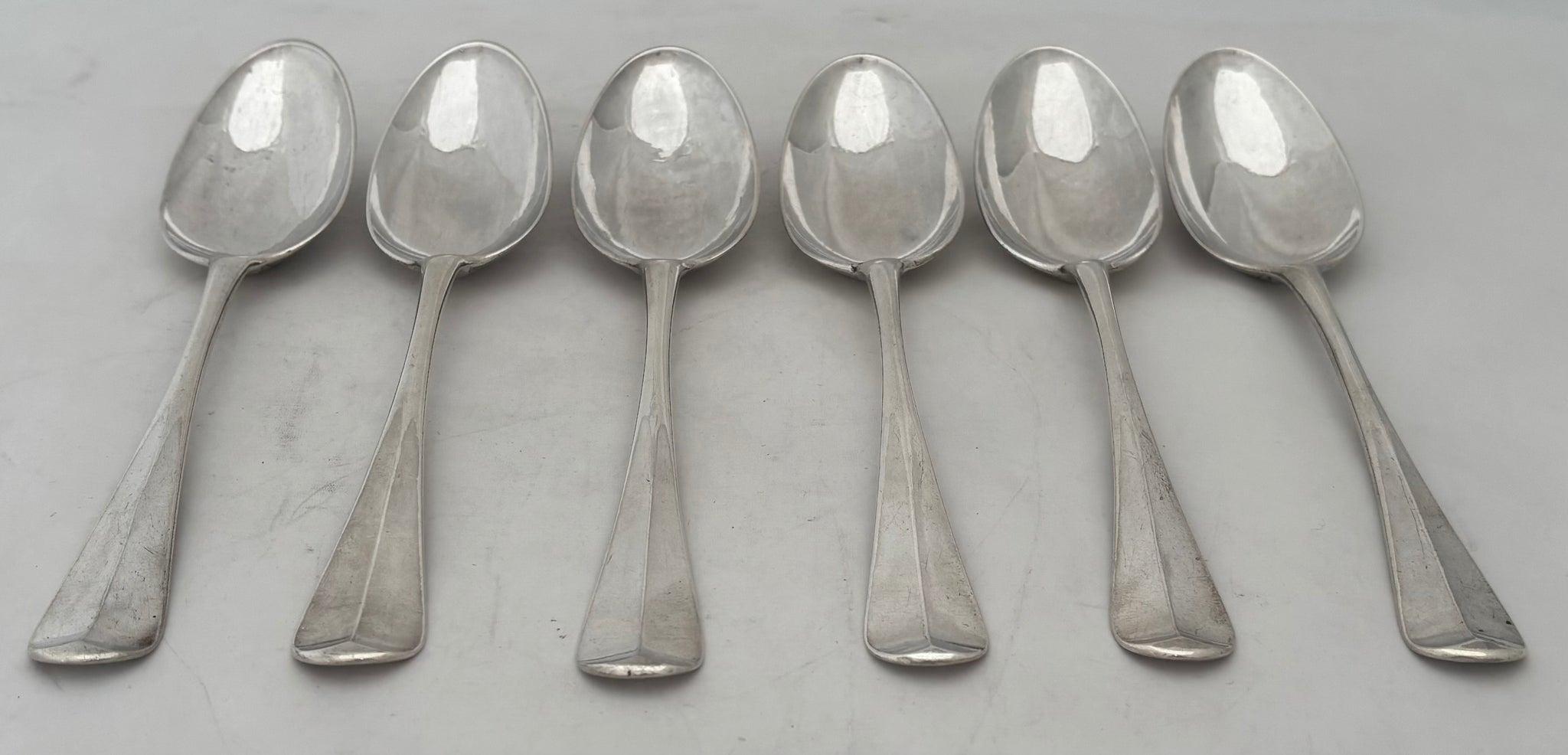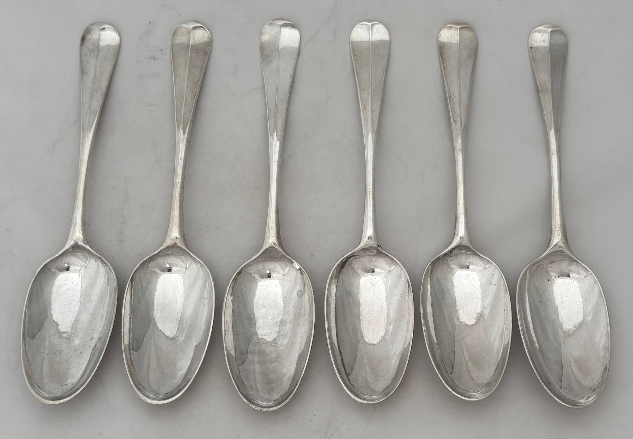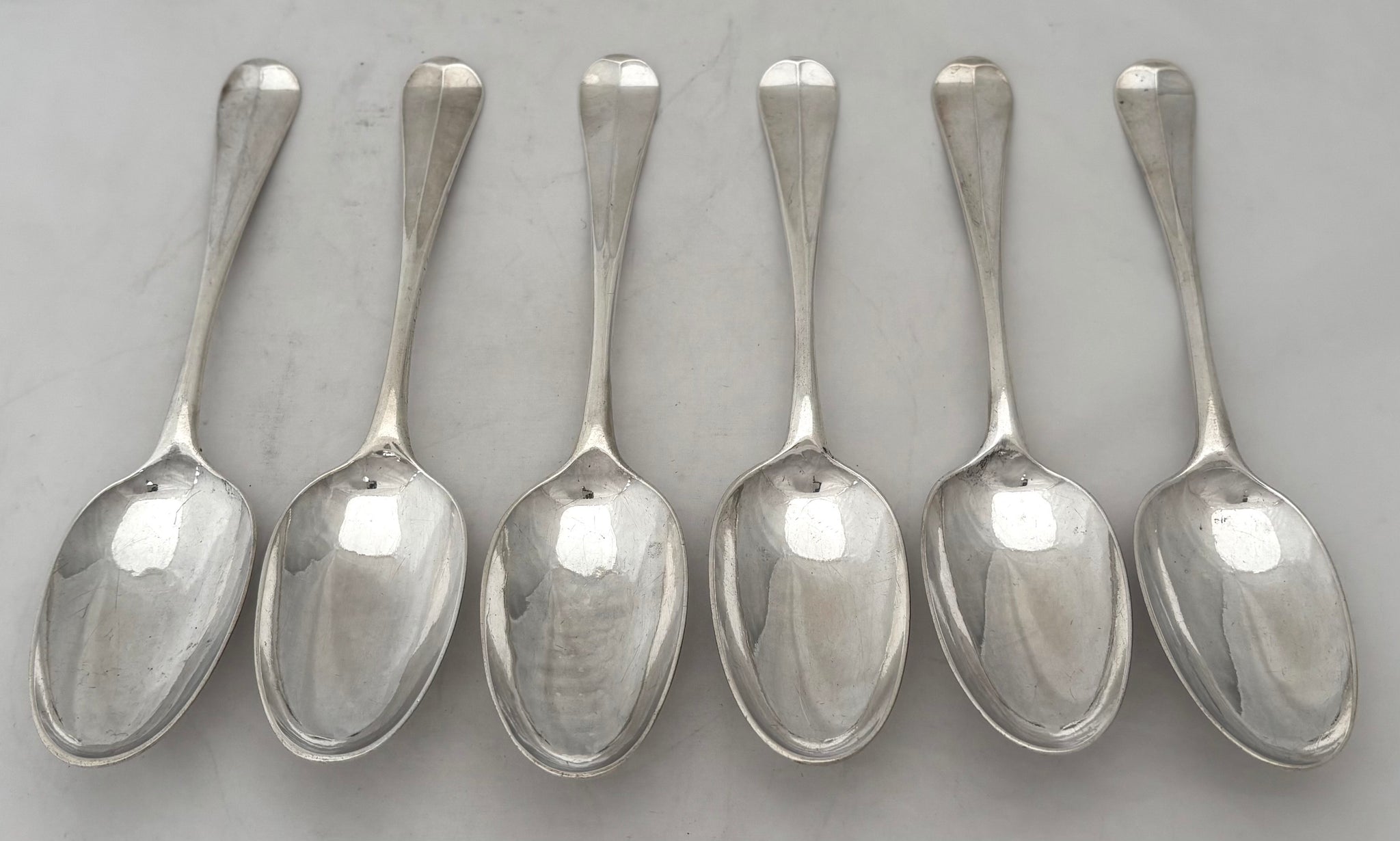 Six George II Hanoverian Pattern Silver Tablespoons.