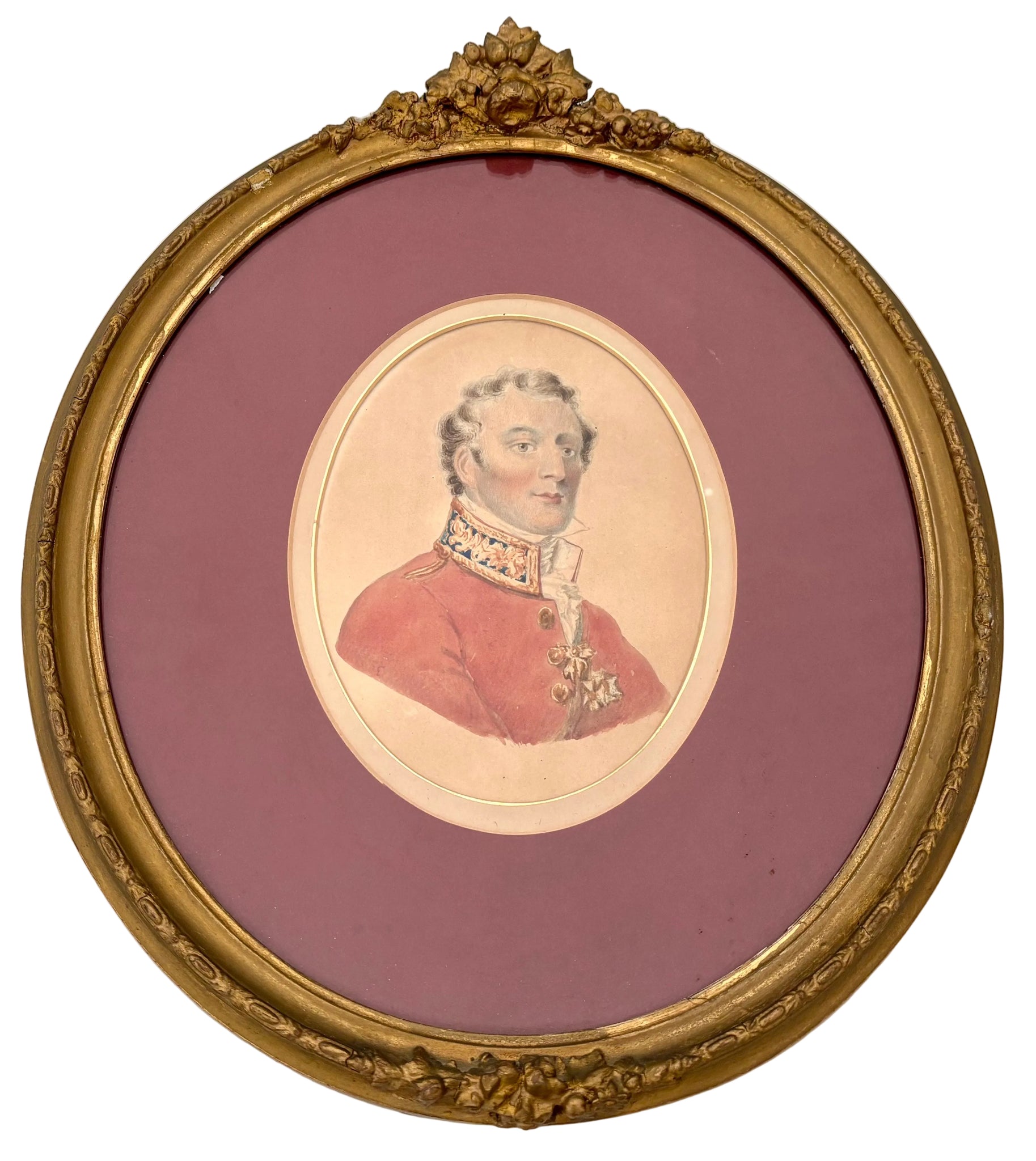 The Duke of Wellington 19th Century Watercolour on Card, in an Oval Gilt Frame.