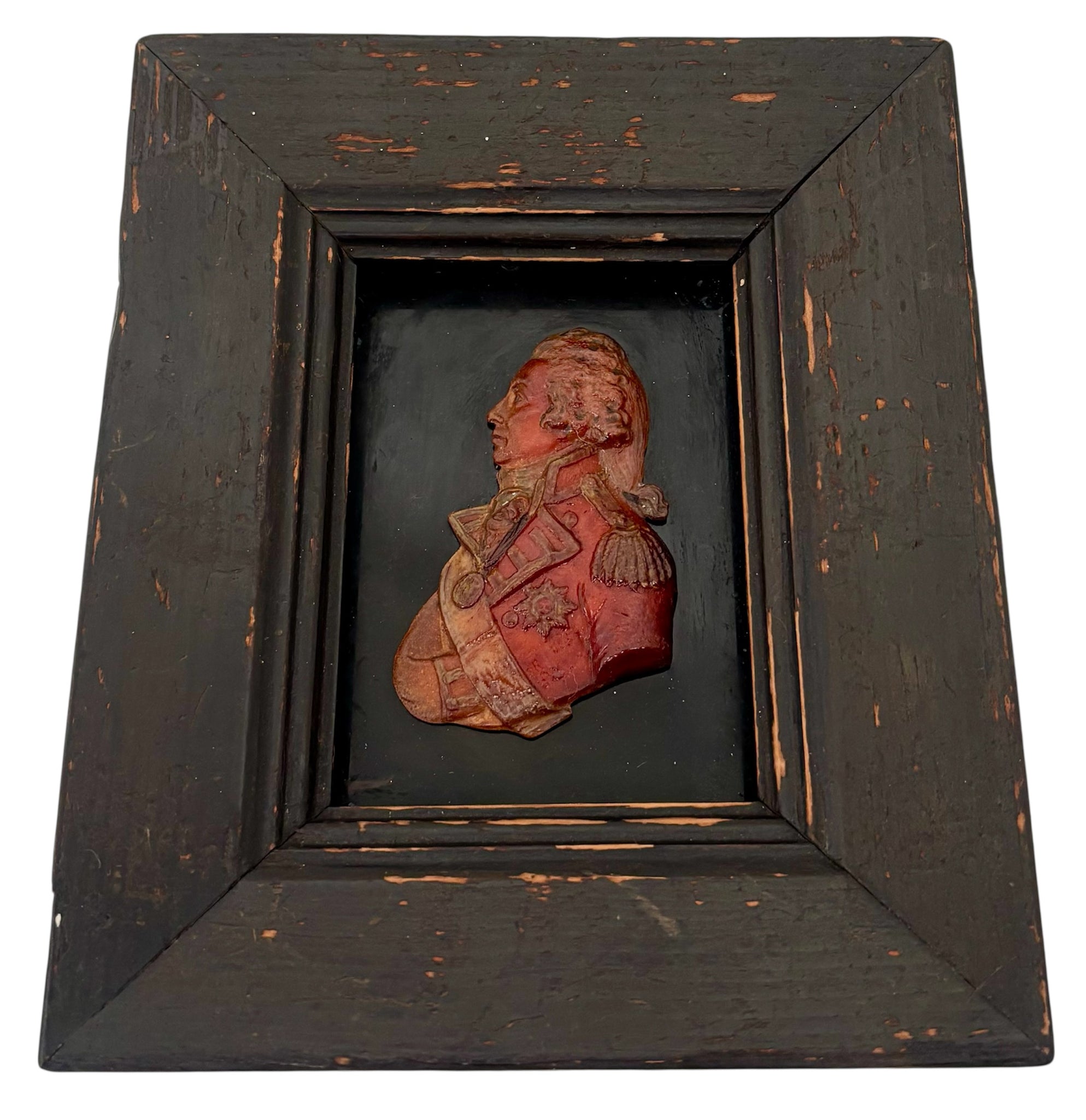 Vice Admiral Viscount Horatio Nelson Polychrome Wax Relief, Early 19th Century. Mounted onto a glass panel and in an unglazed frame.