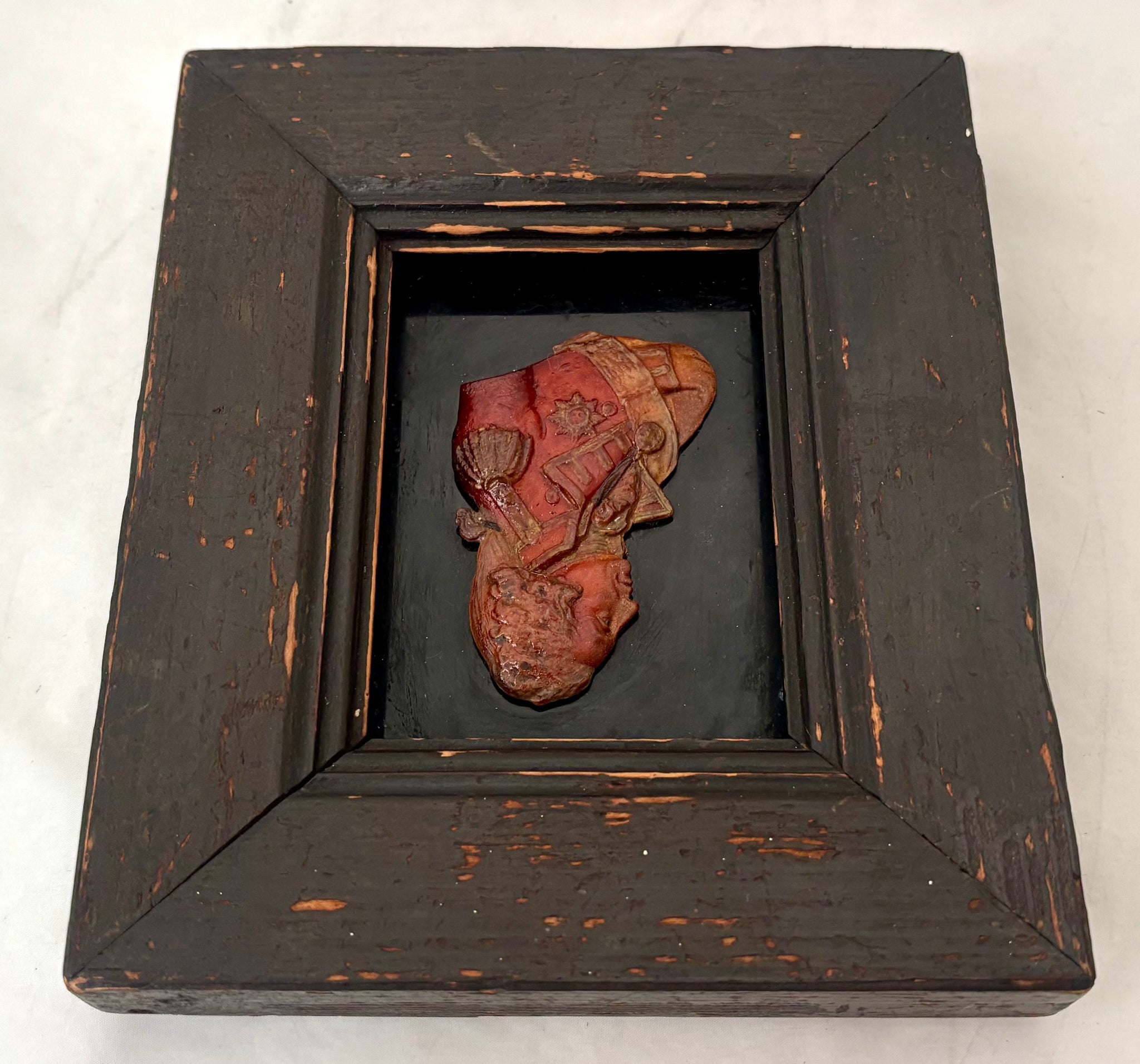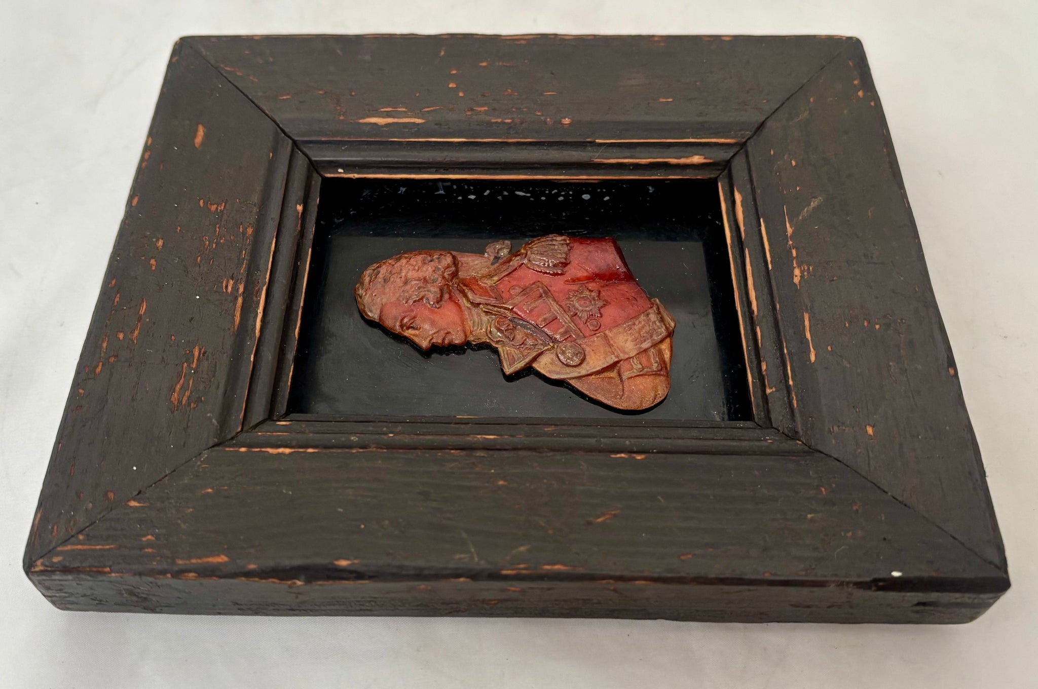 In good condition and without loss or repair. Age related bust and frame wear.