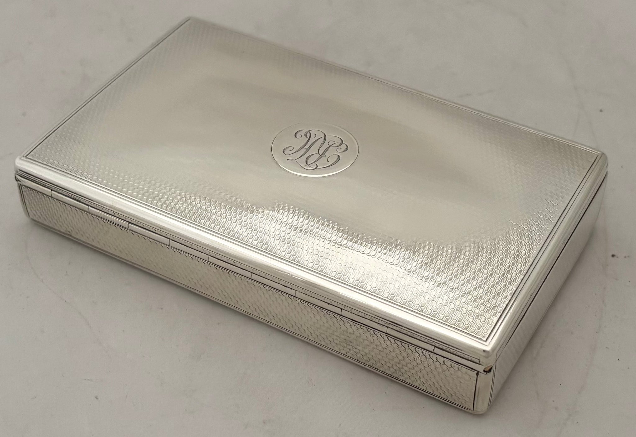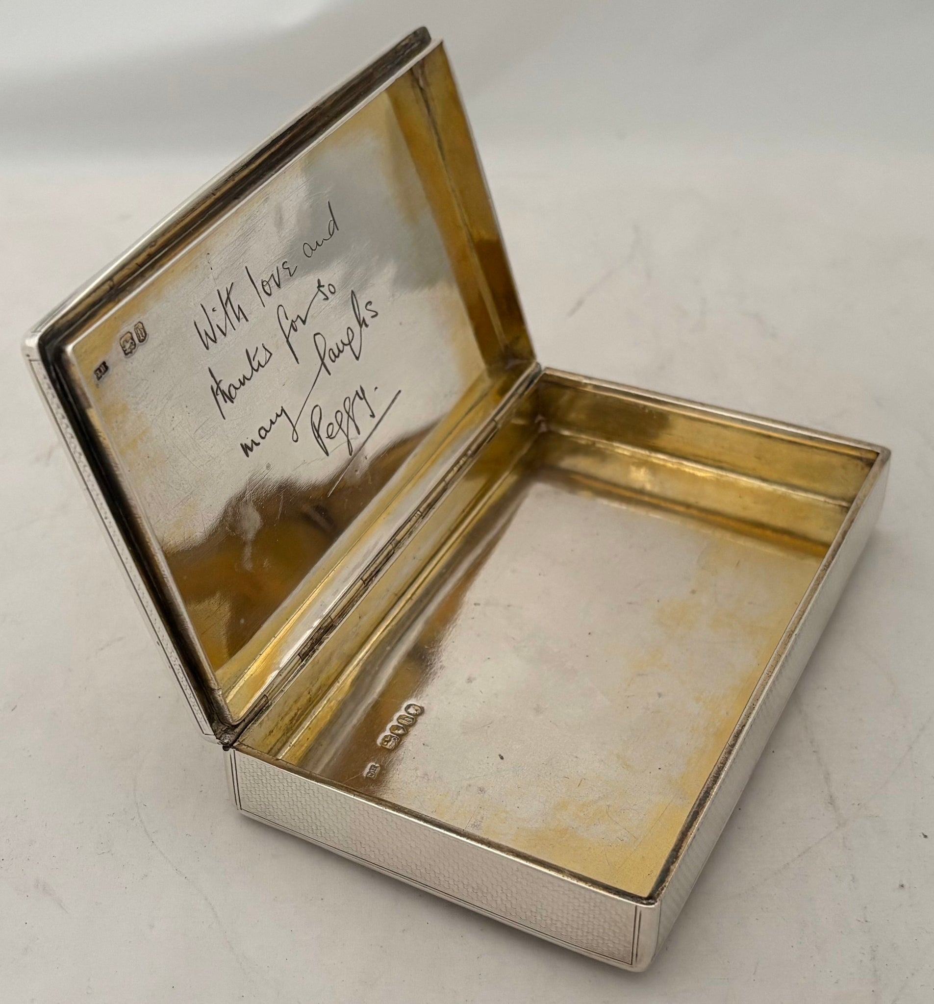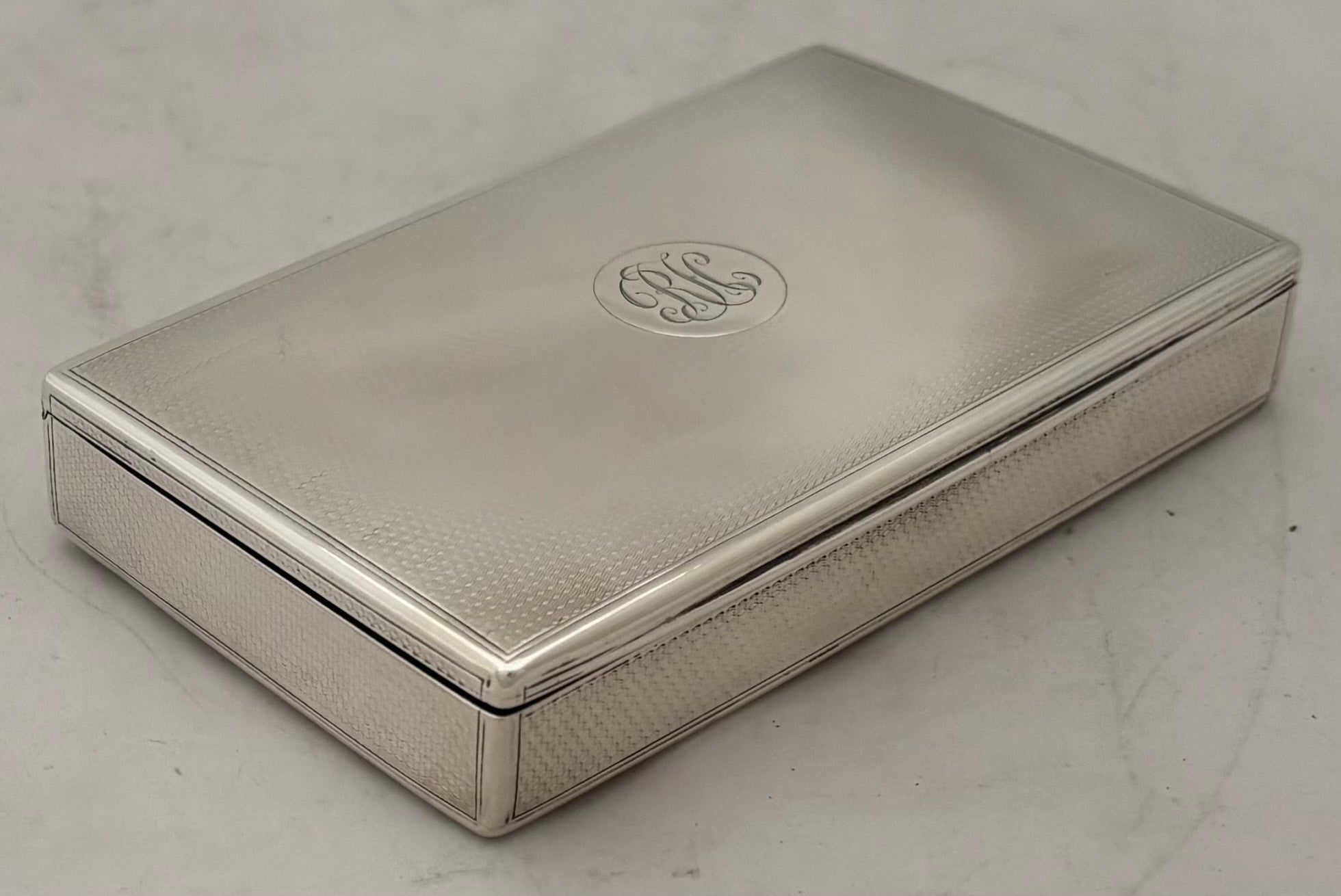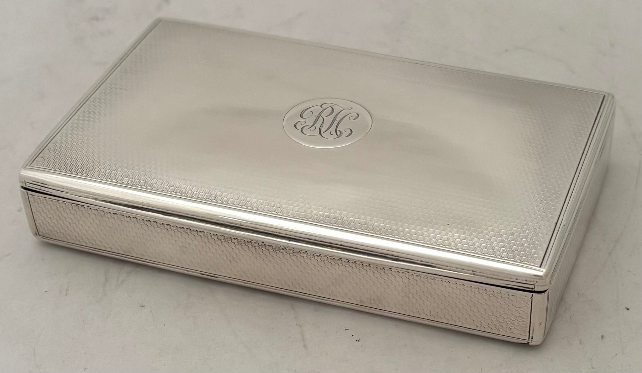 A Victorian Silver Table Snuff Box. The gilded interior with a later inscription. The exterior with engine turned detail and monogram on a raised disc.