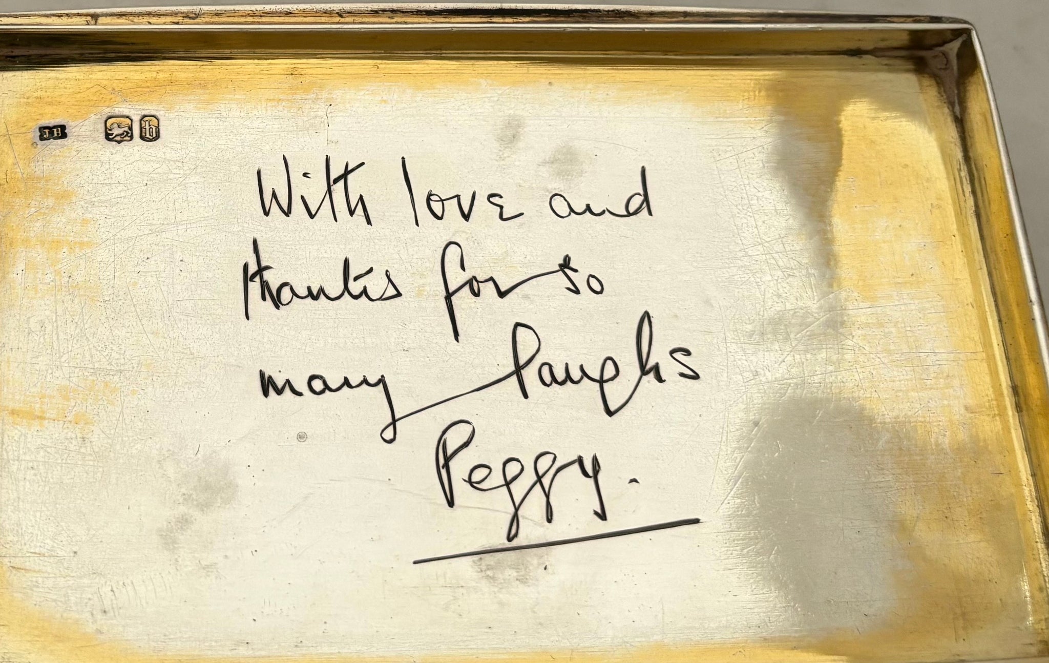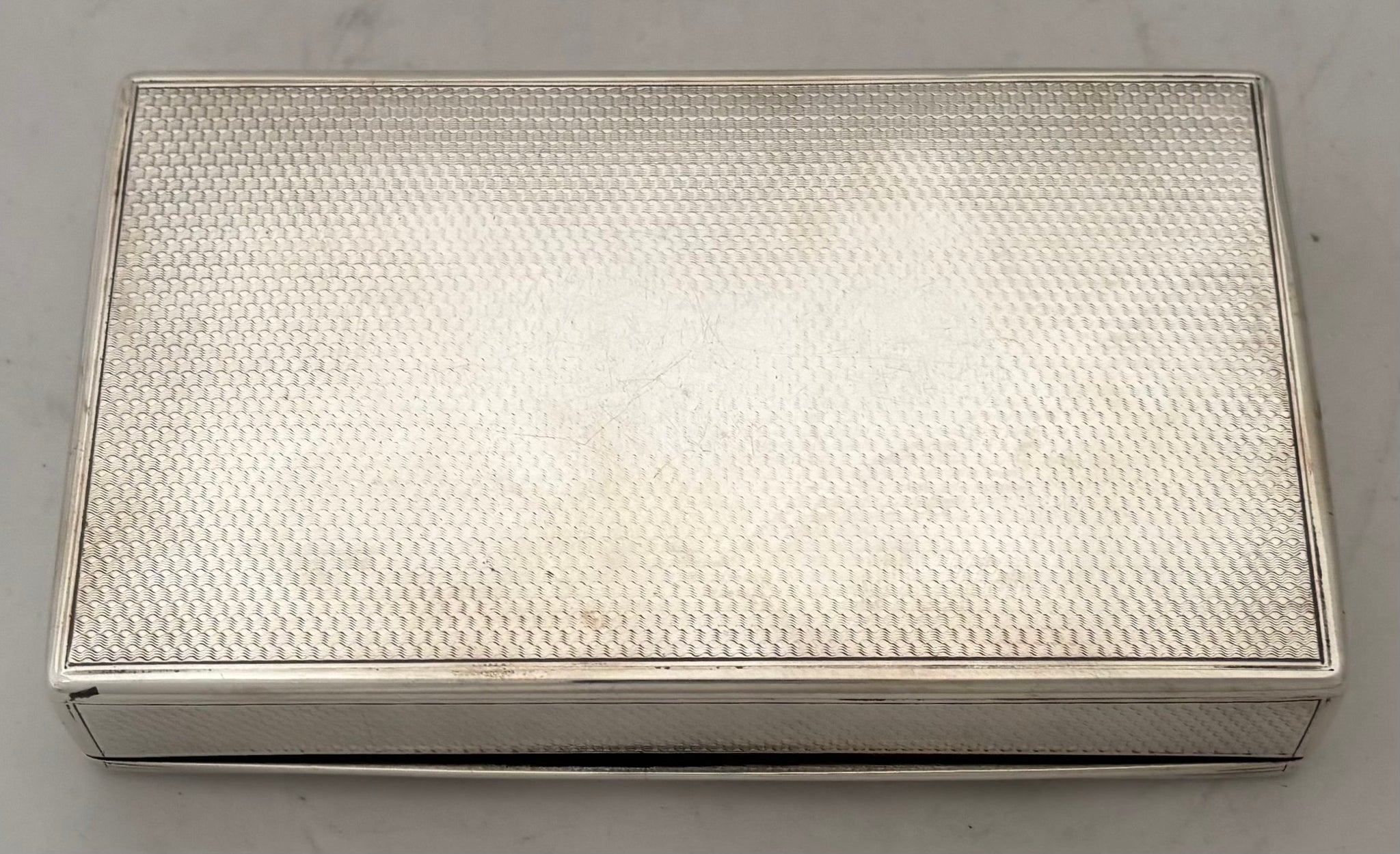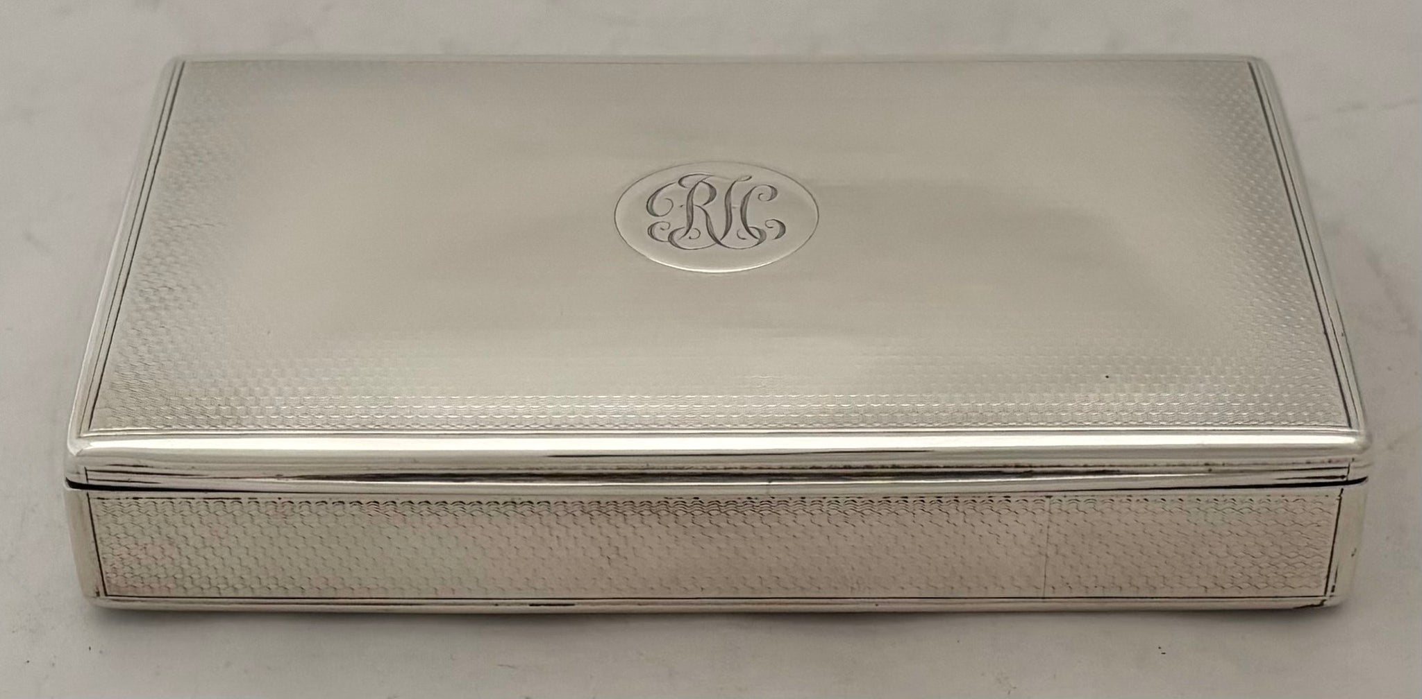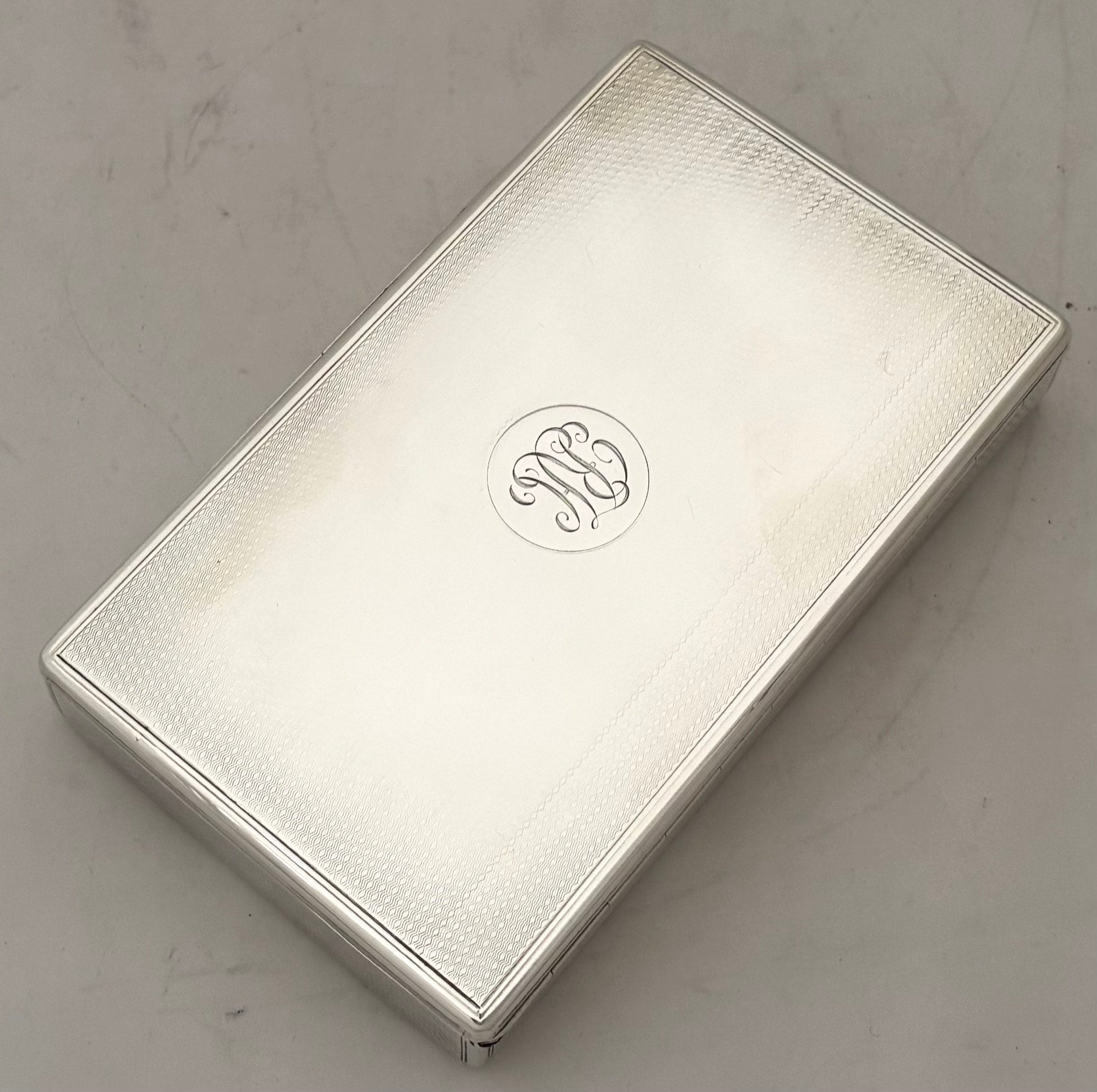 A Victorian Silver Table Snuff Box. The gilded interior with a later inscription. The exterior with engine turned detail and monogram on a raised disc.