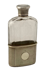 Edwardian Silver Plate & Faceted Glass Hip Flask. Asprey of London, circa 1910.
