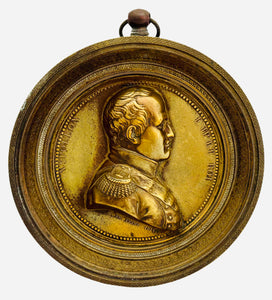 Napoleon Bonaparte Emperor & King, Gilt Metal Portrait Profile Roundel. After Maire, circa 1820.
