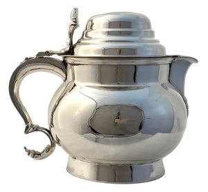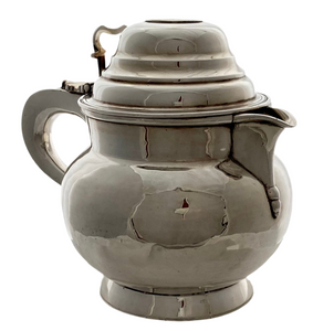 19th Century Silver Plate on Copper Ale Jug with Coin Inset Cover.