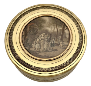 19th Century Gilt Metal Box With Inset Punch & Judy Show Print, circa 1870.