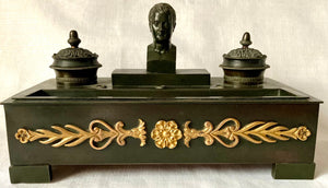 19th Century French Empire Style Ebonised Metalware Inkstand with Bust of Napoleon Bonaparte.