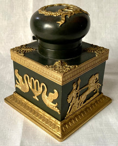 19th Century French Empire Style Gilt Bronze Mounted Ebonised Metalware Inkwell.