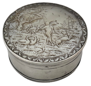 Early 19th Century Continental White Metal and Carved Mother of Pearl Box.