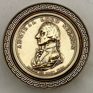 Early 19th Century Admiral Lord Nelson Circular Brass Snuff Box with Battle Honours.