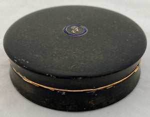 Duke of Wellington Shellac Snuff Box with Brass & Enamel Medalet.