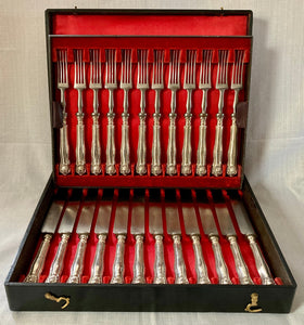 Early 19th Century Continental Canteen of Double Struck Thread & Shell Pattern Table Knives & Forks.