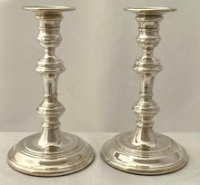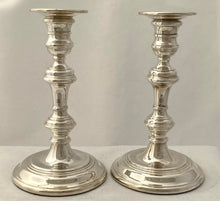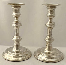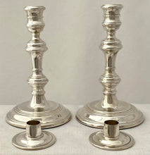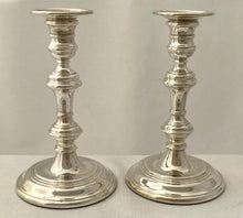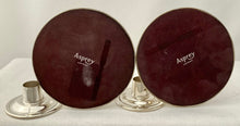 Asprey, matching pair of silver candlesticks with removable nozzles, raised on a spreading circular and reeded base. The bases are loaded and covered with Asprey London purple velvet.