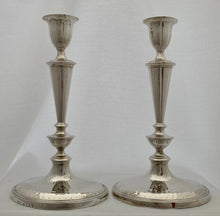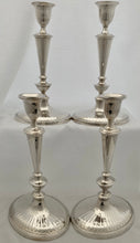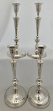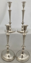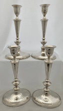 Georgian, George III, Set of Four Silver Candlesticks. With tapering knopped stems, fluted urn shaped fixed sconces and wide fluted oval bases. These are filled candlesticks and not cast.