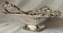 Georgian, George IV, Crested Old Sheffield Plate Bread Basket, circa 1820 - 1830. Of rectangular form with a gadrooned and rosette border and similarly decorated twin leaf capped handles. Features rolled over silver edges and a rubbed in silver rectangle with the crest of a leopard rampant. Raised on a rectangular plinth foot. The lower sides of the basket are fluted.