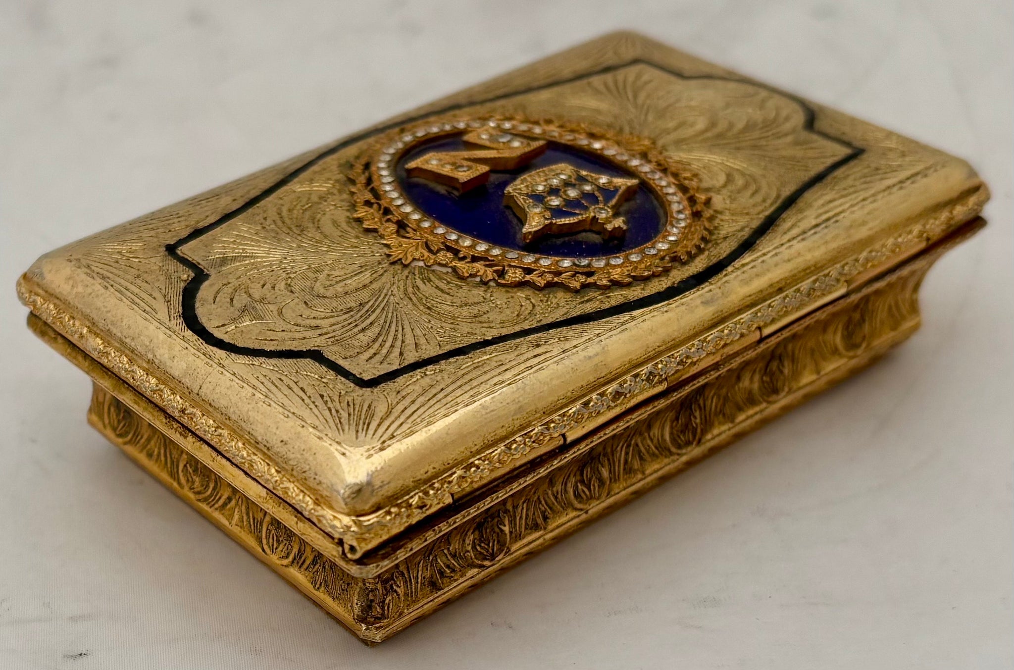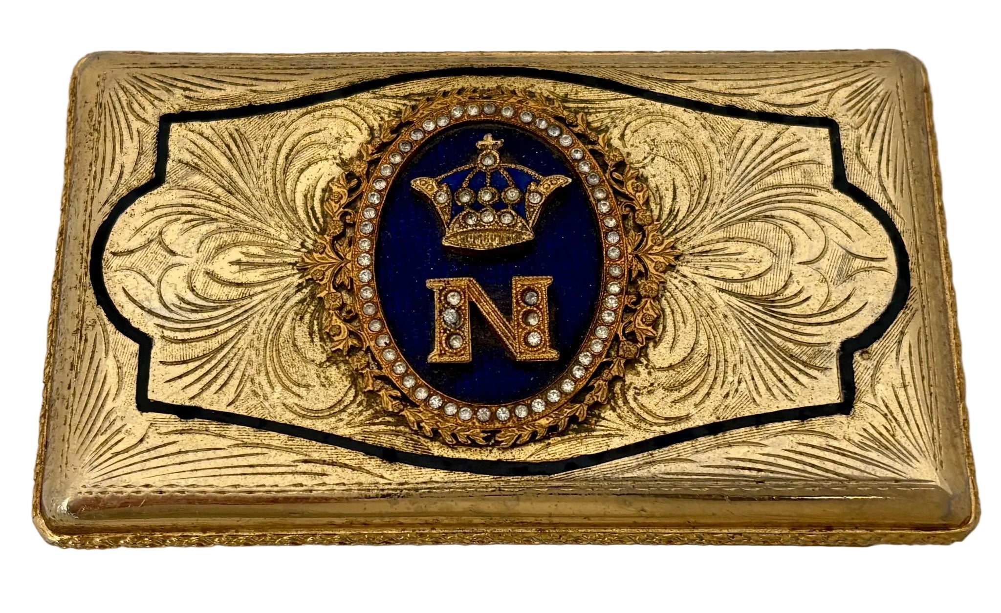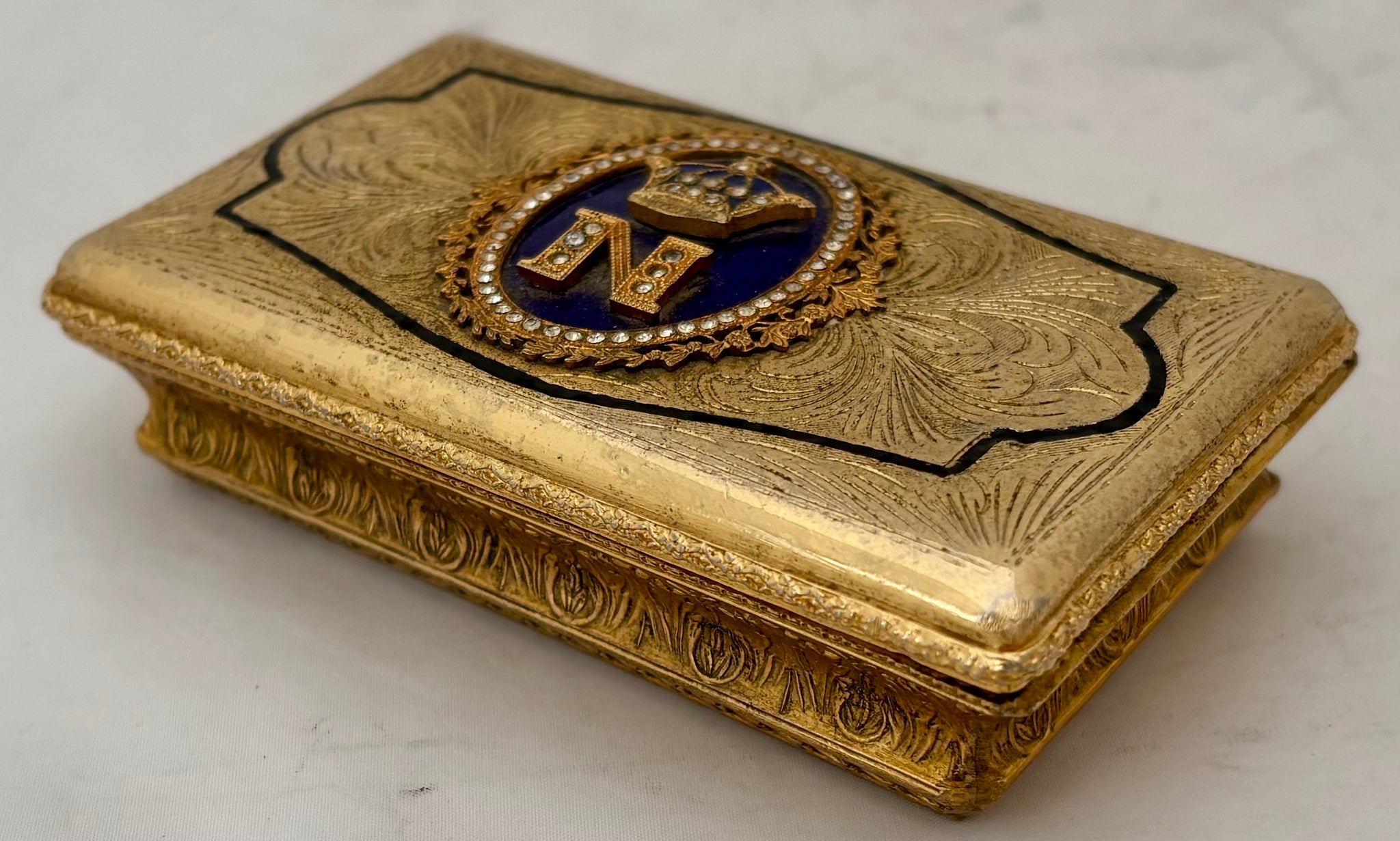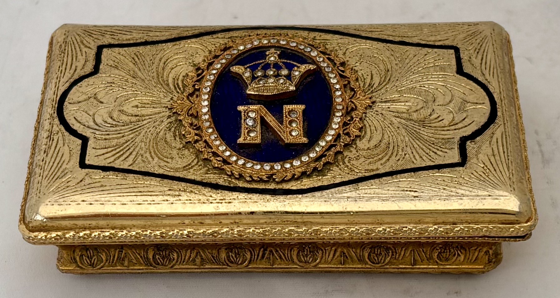 Napoleon III Cipher Gilt Metal & Enamel Table Snuff Box.