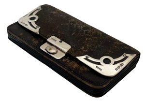 Victorian Art Nouveau Silver Mounted Leather Wallet. Birmingham 1899 Ludwig Krumm.