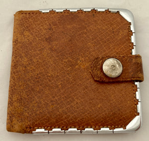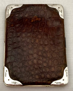 Edwardian Silver Mounted Leather Card Case. Birmingham 1904 Albert Baker & Co.