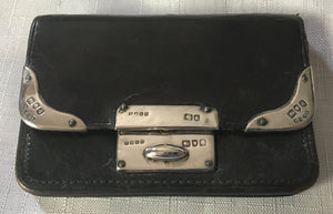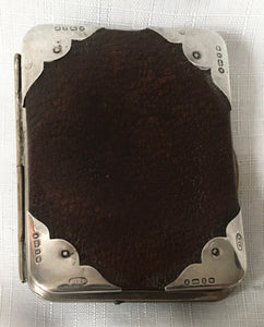 Edwardian Silver Mounted Leather Card Case. London 1903 Henry Marshall.