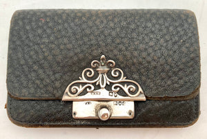 Victorian Silver Mounted Miniature Leather Purse. Birmingham 1900 Eugene Henry Posen.