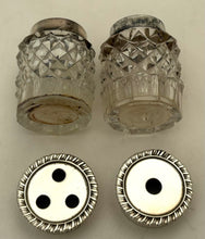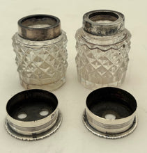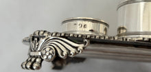 In excellent condition with no dents or creases. Minor nibbles to the cut glass bottles. Slight difference in bottle sizes, so possibly a replacement as one collar is unmarked.
