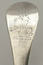 A George I Set of Six Hanoverian Pattern Britannia Silver Tablespoons with Rat Tail Bowls. Each spoon reverse crested to the handle terminal.