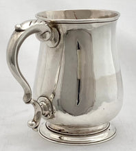 Georgian, George III, silver mug of plain baluster form. Features acanthus leaf capped scroll handle and a spreading, circular, pedestal foot. Capacity to the brim is about 300 ml, so it's a half pint mug.