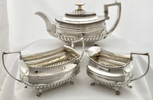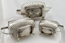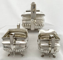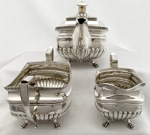 Georgian, George III, silver tea service of rounded rectangular form and all being half fluted on four paw feet.