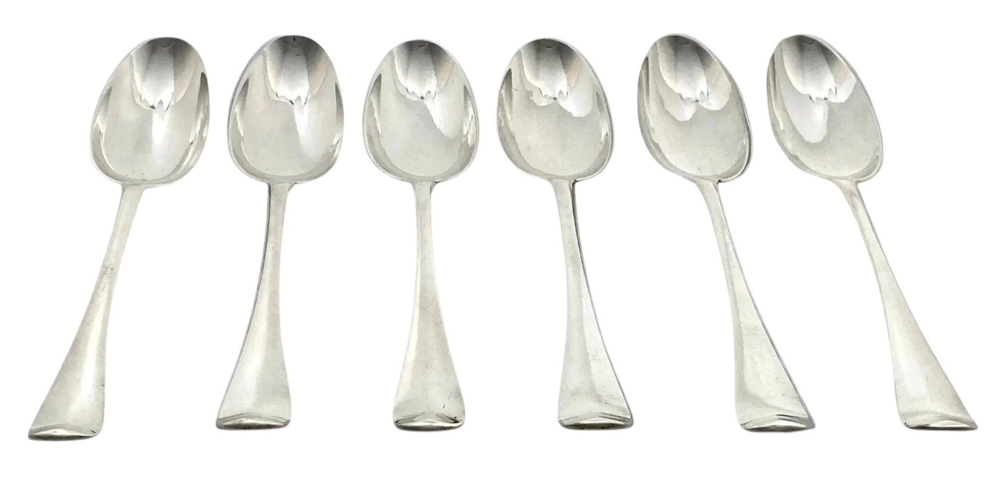 Georgian, George II, set of six silver Hanoverian pattern tablespoons with monogram to the reverse.