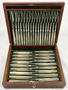 Georgian, George III, Cased Set of Silver & Mother of Pearl Fruit Knives & Forks for Eighteen. London 1809/10 Moses Brent.