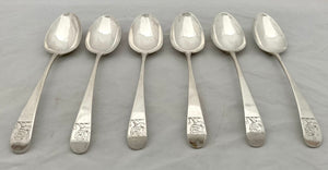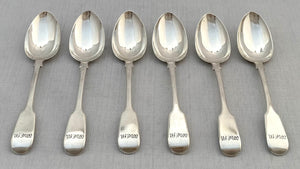 William IV Six Silver Teaspoons. London 1833 William Theobalds. 3.9 troy ounces.