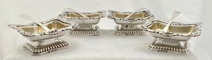 Georgian, George III, Four Silver Salts by Robert Gainsford of Sheffield & Four York Silver Spoons. 16.8 troy ounces.