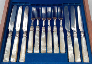 William IV Cased Set of Silver & Carved Mother of Pearl Dessert Cutlery for Six. Sheffield 1836 Aaron Hadfield.