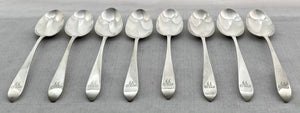 Georgian, George III, Set of Eight Silver Tablespoons. London 1801 Eley & Fearn. 17.5 troy ounces.