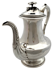 William IV Silver Coffee Pot. Arms of Ridley & Johnson. Sheffield 1835 Hawksworth & Eyre. 23.9 troy ounces.
