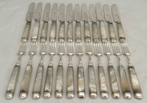 Georgian, George III, Silver & Mother of Pearl Dessert Knives & Forks for Twelve. Sheffield 1819 James Crawshaw.
