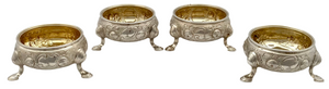 Georgian, George II, Four Silver Salts. London 1742 Edward Wood. 9 troy ounces.