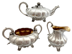 William IV Old Sheffield Plate Matched Tea Set of Melon form, circa 1835.