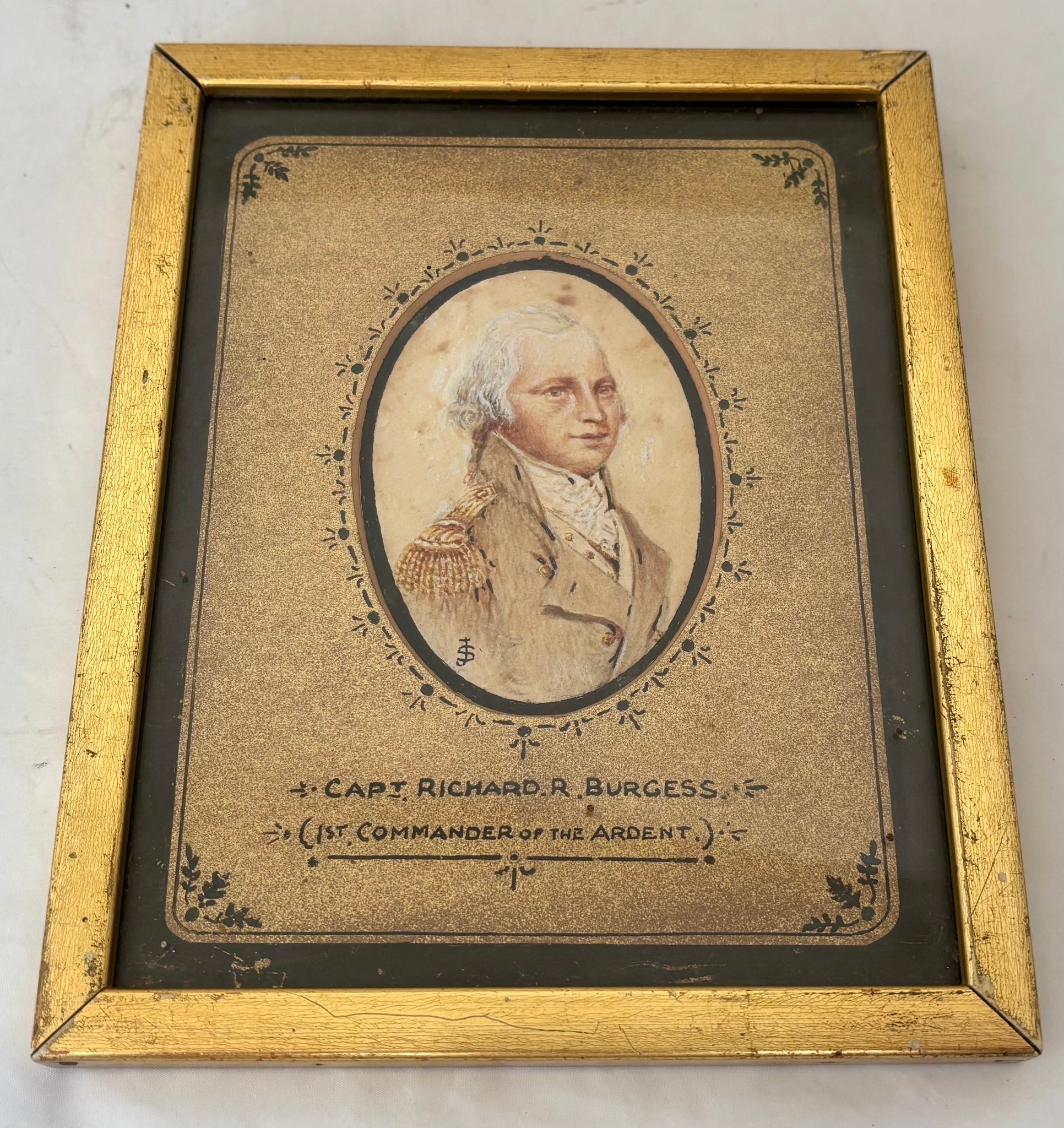 Captain Richard Rundle Burges (Burgess) was commissioned as a Lieutenant in the Royal Navy in 1772. He was injured in 1782 on HMS London during the Anglo-French War. During the Battle of Camperdon he commanded HMS Ardent which attacked the larger ship Vrijheid on her own. There she suffered more than a hundred casualties, including Burges himself, who was cut in two by a chain shot in the first ten minutes of battle. During the fight, Burges' men "fought like maniacs." Ardent suffered the most casualties of any British ship, over 12% of the total British losses in battle. In 1802, Burges was honored with a monument in St Paul's Cathedral in London, documenting his action in the battle.