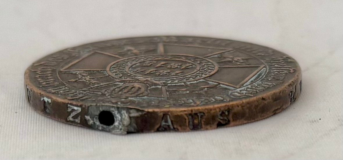 German Medal, Made from French Cannon Captured During the Napoleonic Campaigns of 1814 and 1815. Issued in 1821 by Elector Wilhelm II. The medal was awarded to all combatants who fought and crossed the Rhine in 1814 and 1815.
