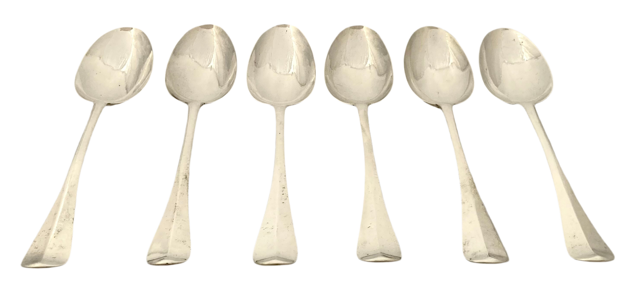 Georgian, George I/II, Set of Six Silver Rat Tail Tablespoons. Of Hanoverian form, each with an identical set of initials.