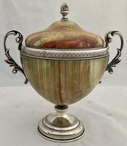 First Half 20th Century Silver Plated Green Onyx Urn & Cover.